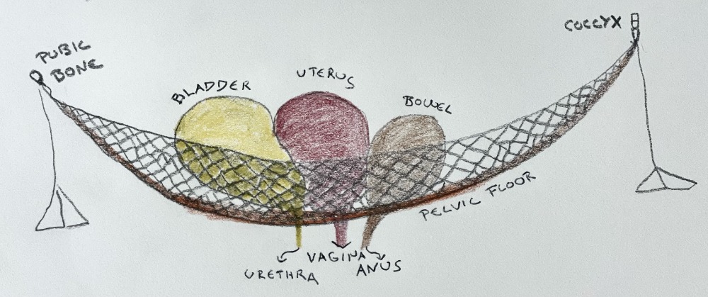 We could visualise our pelvic floor as a hammock providing a foundation for the pelvic organs in their natural position, while also partially transferring its tension to the carried organs. If the muscle tension is excessive or insufficient, the position and tension of the organs will consequently alter.